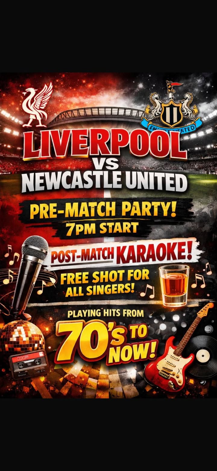⚽️🔴 MATCHDAY MADNESS ⚫️⚽️ Liverpool 🆚 Newcastle. Big game. Massive vibes. We’re kicking things off with karaoke BEFORE kick-off to get the voices warmed up, then it’s eyes on the screen for 90 minutes of pure Barclays chaos. Final whistle blown? Straight back on the mic. If you love footy and think you can sing… Saturday is for you. #karaoke #Annitsford #entertainment #cramlington #footballfans #NewcastleUnited #prematchvibes